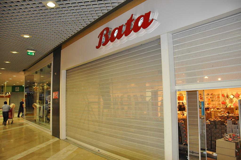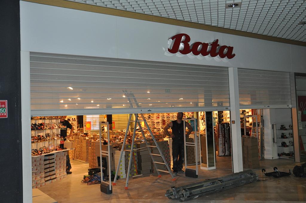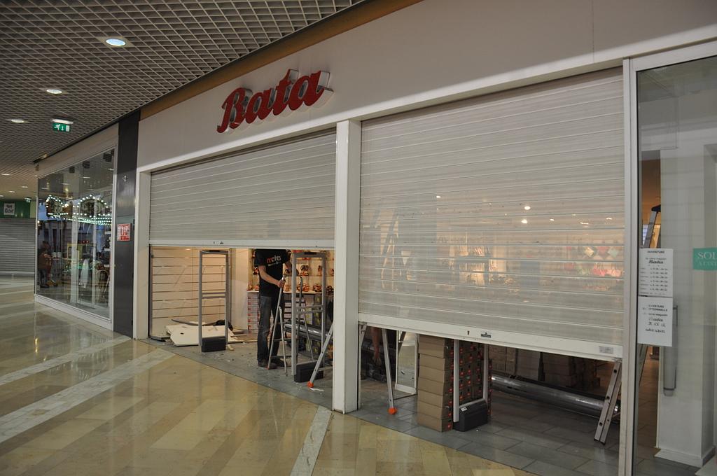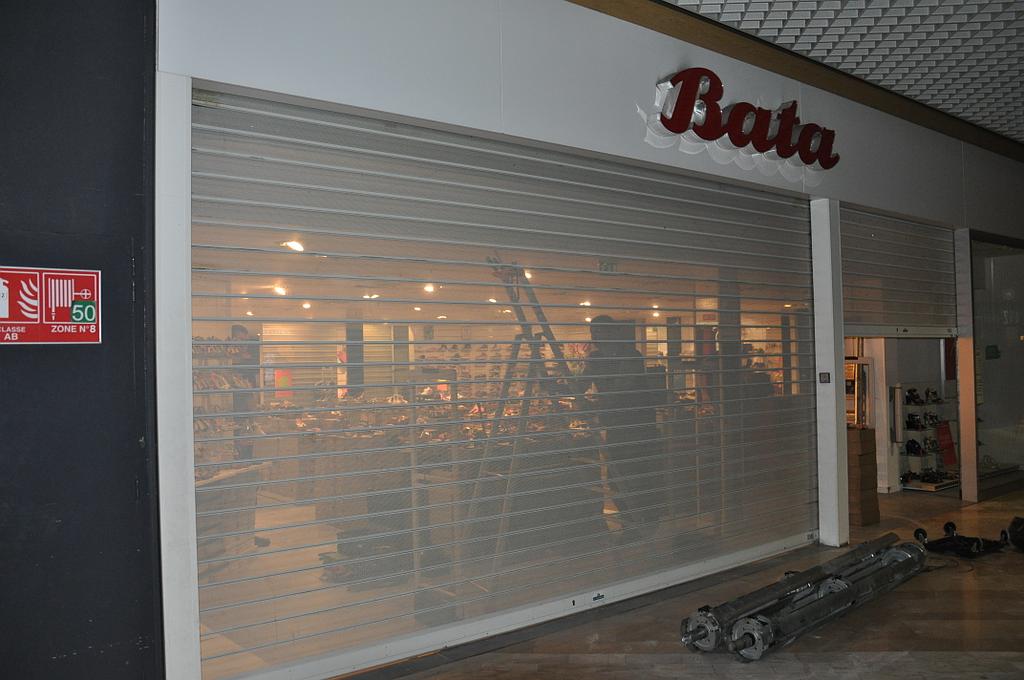 Rideaux métalliques dans galerie marchande pour Bata